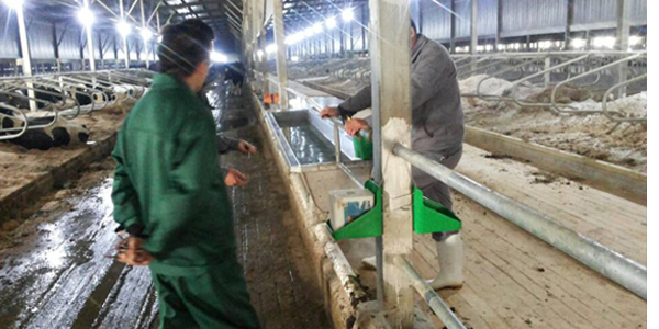 2014年11月12日星期三 东方联鸣舔砖产品经理钱叶侃拜访上海牛奶公司黄梅牧场,进行舔砖托盘的安装指导。 因地制宜,自主创新!